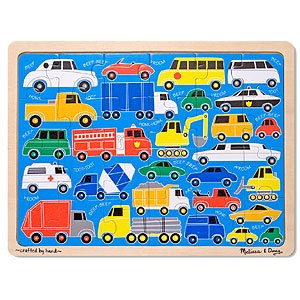 - Twenty-seven colorful vehicles, coming and going, on this 24-piece wooden jigsaw provide fun and challenge